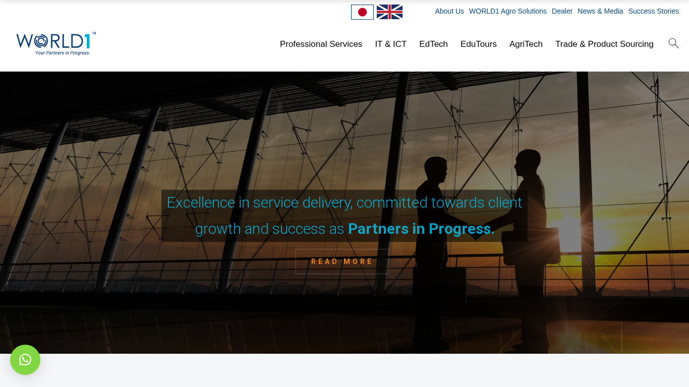 | SEO-описание | WORLD1 SOLUTIONS (“World1”) is a leading professional services, international trade i.e. (Import/Export) and Skill Tourism & Education Consultancy Company focused on promoting/boosting international trade and business cooperation between India and the rest of the world i.e. CIS Countries, Asia Pacific, Japan, Africa, Europe & North America. The portfolio of services provided by WORLD1 includes but are not limited to Entry Strategy Consulting services package (Pre Entry, Entry & Post Entry), Tap to India service package, Strategic Alliances & Business Collaborations, Business Representation & Virtual Expat Services, Business Partner Identification, market research & techno-commercial feasibility studies, Management Consultancy, IT Consultancy, Business Consultancy, Education Consultancy, Training and Skill Development, Business Representation, Government Liaison, Logistics and other allied business facilitation services. |