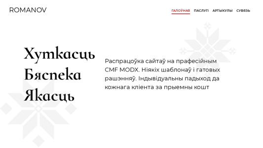 | Название / Заголовок | Распрацоўка сайтаў на MODX па Беларусі. ROMANOV.BY |