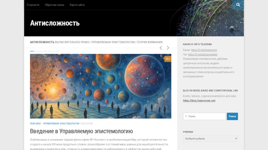| AI-анализ | The web project "Anticomplexity.org" is dedicated to the study of computational law, controlled epistemology, and attention theory. The site features articles and publications, including one on systemic engineering from 2018, authored by 'admin', and another on managed epistemology from 2025. The content discusses the problem of human and group activity changing the world, the role of thinking in action, and the desire for efficiency and maximum effect. There is also a piece from 2025 introducing managed epistemology, contextualizing and problematizing the complex world created by humanity at the beginning of the 21st century, and discussing the role of text, metadata, and technological support in knowledge communication. |