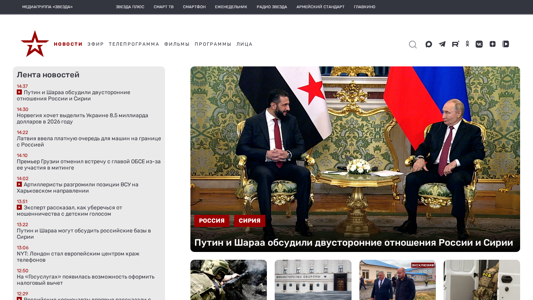 | Ключевые слова | телеканал Звезда новости фильмы программы прямой эфир стримы документальное кино последние новости смотреть онлайн новости России и мира новости дня радио российская армия Министерство обороны День Победы Звезда live |