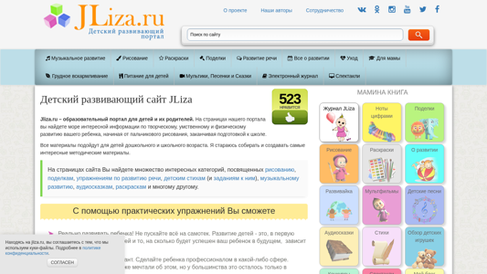 | AI-анализ | This website is a children's development portal. Teach your child to play on a children's piano, draw, make interesting crafts and much more on JLiza.ru. A children's site for creative, intellectual, and physical development of children. Keywords: children's development site, child development, child's development, developing children's games. Top words: Jliza 9, children 8, sections 8, will be able 7, children's 6, child 6, transfer 6, development 5, development of 5, children's 5, notes 5, portal 4, mamas 4, journal 4, drawing 4, developing 4, only 4, piano 4, songs 4, we_are_playing 4. JLiza.ru is an educational portal for children and their |