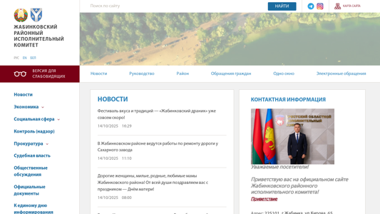 | AI-анализ | The website is a Russian-language portal for the administration of Zhabinka, a rural district in Belarus. It provides information on the district's leadership, including the chairman of the regional executive committee and his deputies, as well as the chairman of the district council. The website also offers a one-stop shop service, titled "одно окно," for administrative procedures related to business activities, with detailed information on the process, required documents, and fees. Additionally, the website features a section for public inquiries and contacts for various organizations providing essential services to the population, along with a calendar of personal reception hours for district leaders. The website is part of the larger brest-region.gov.by domain. |