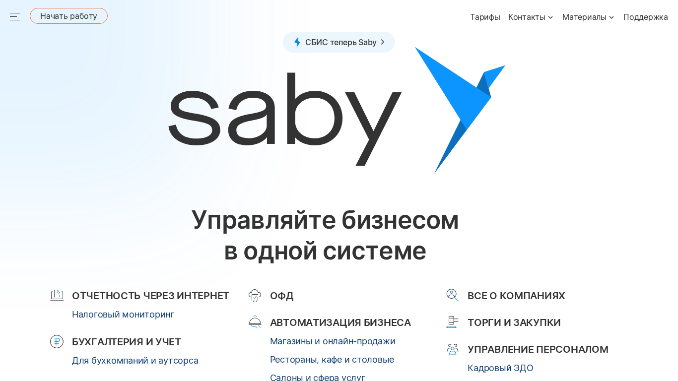 | Название / Заголовок | Saby (ранее СБИС или sbis) — экосистема для управления бизнесом |