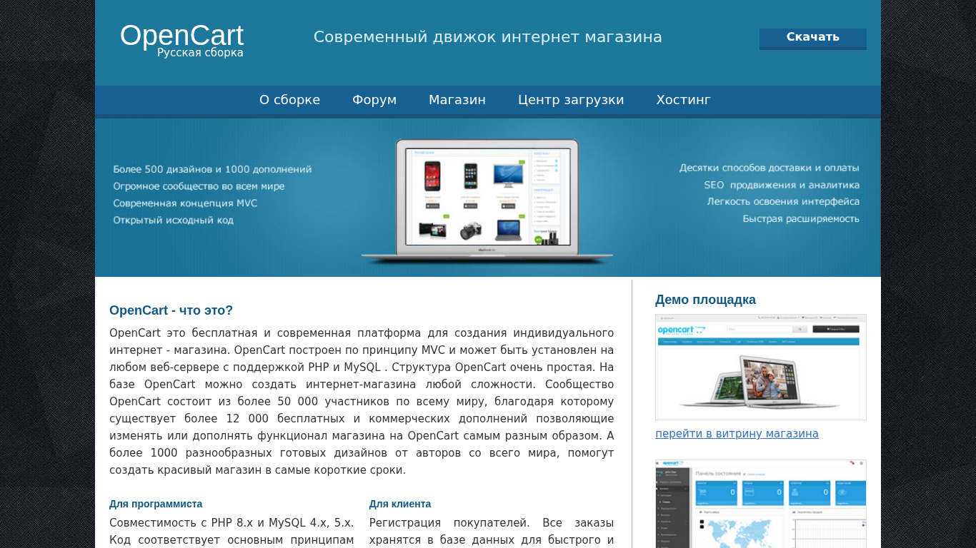 | Название / Заголовок | Opencart "Русская сборка" | Движок интернет магазина |