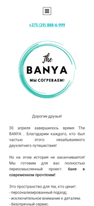 | AI-анализ | --- The website <thebanya.by> is for a bathhouse in Minsk, Belarus, offering a warm pool, sauna, and aromatic tub. It is an ideal place for relaxation, unwinding, and romantic evenings. Users can book online. The title is "Баня в Минске с бассейном" (Banya in Minsk with a Warm Pool), and the keywords include "sauna in Minsk with a pool," "rent a bathhouse in Minsk with a pool," and "private bathhouse in Minsk with a pool." The website also mentions that it is no longer "The BANYA," but they are preparing a new project. The content emphasizes personalized service, attention to detail, and excellent service. The company offers a wide range of services for optimal results and positive impact on one's activities. Users can |