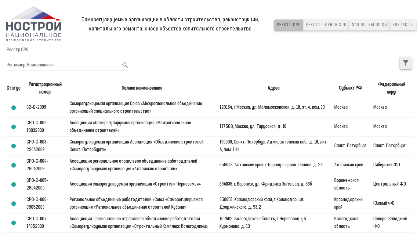 | Название / Заголовок | Единый реестр НОСТРОЙ |