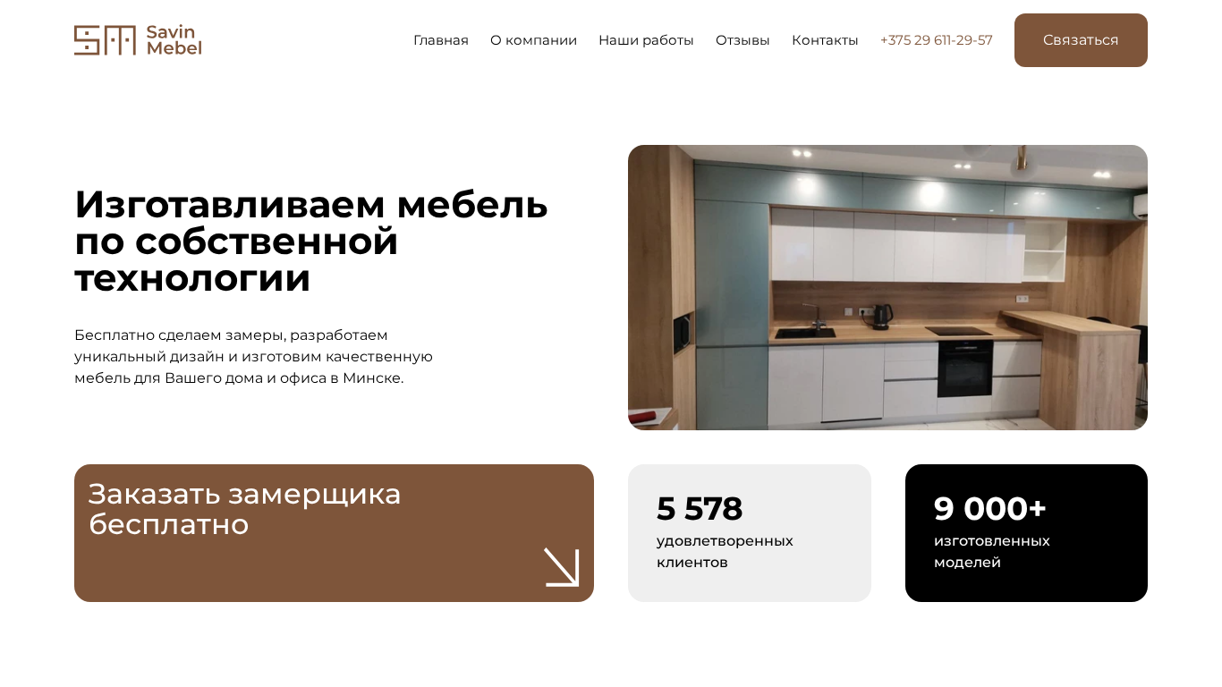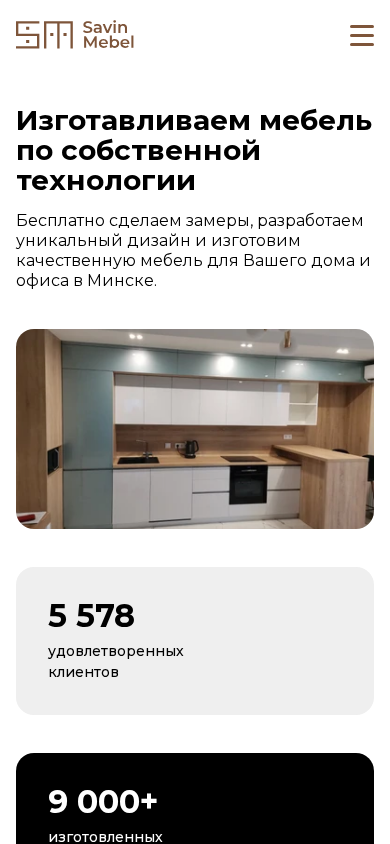 | AI-анализ | --- The web project "Savin-Mebel" is a custom furniture manufacturing company based in Minsk, Belarus. They offer high-quality services at affordable prices, including precise measurements, individual design, free delivery, and bonus offers. Savin-Mebel has been in business for over 18 years and aims to not only create furniture but also enhance the comfort and style of clients' spaces. Their product range includes kitchens, wardrobes, office furniture, and suspended ceilings. Services include free measurements, design, production, delivery, and installation. The company values each client and offers discounts for pensioners and large families, as well as a no-interest installment plan. Current promotions include a free pull-down cabinet or a 50% discount on the second wardrobe with a kitchen purchase. Savin-Mebel's team takes pride in their work, |