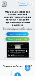 | AI-анализ | The website NIAP (<https://nplanner.ru>) is a professional analytical service designed for healthcare professionals and nutritionists. It allows for the creation of personalized balanced diets more quickly and the assessment of clients' health status. The website offers a Nutrient Planner service that saves up to 80% of working time compared to manual calculations. The website is developed by the Federal State Budgetary Scientific Institution "FITR PI and Biotechnology" in collaboration with OOO "Nutrient Planner". It is suitable for licensing in medical organizations in accordance with the Russian Ministry of Health's decree No. 920n1. The website includes features such as a client database, online questionnaires, a vast product database, recipe selection with specific compositions, and the ability to systematize one's work. Users can create a detailed PDF report for |