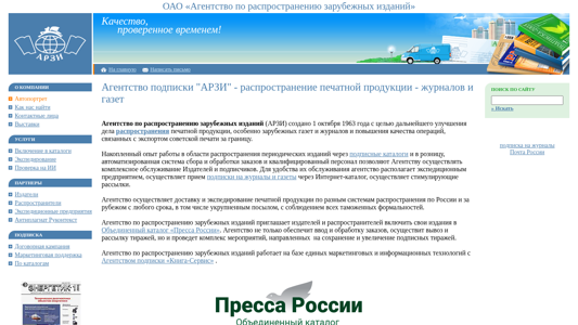 | Ключевые слова | АРЗИ - распространение печатной продукции - журналов и газет каталоги подписки |