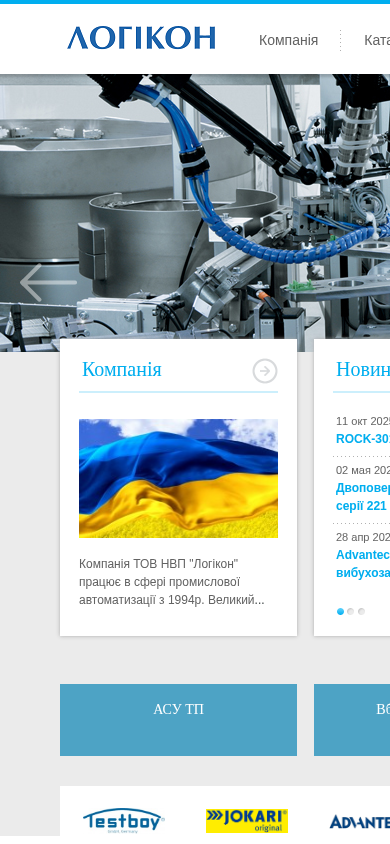| AI-анализ | The website "ЛОГIКОН" (Logicon) is a Ukrainian company catalog focused on industrial automation and manufacturing industries. Established in 1994, the company offers solutions for various sectors including heavy industry, machinery manufacturing, information technology, fuel and energy complex, processing and light industries, and chemical and food industries. The website features news, product information, and contact details. Notable products mentioned include a Rock-301 connector from Advantech, a two-story WAGO connector with a lever, and a new sensor from Advantech. The website also provides information on how to clean an electromagnetic DANFOSS valve and industrial keyboards or trackballs, as well as extended WAGO clamp line offerings for building electrical installation, and news on Metro Almaty being managed by GENESIS64. The site offers registration and login |