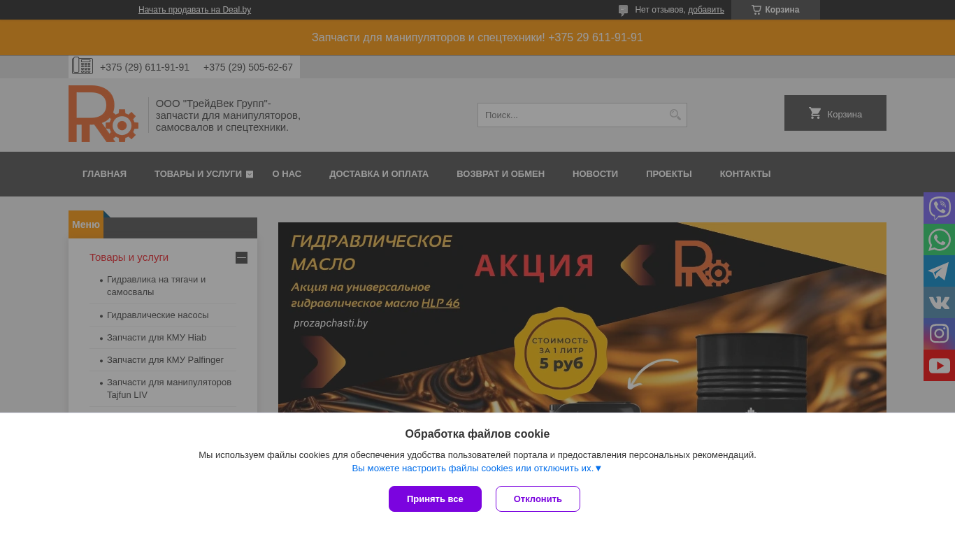 | SEO-описание | ➤ Компания ООО "ТрейдВек Групп" предлагает купить запчасти для манипуляторов и спецтехники. 🔩 Оригинальные запчасти для КМУ и спецтехники. ✔ Доставка по РБ и странам СНГ. 🌐 Консультация по телефону: +375 (29) 611-91-91 ☎ |