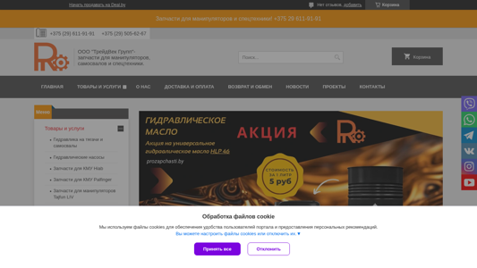 | AI-анализ | The website is a business platform for trading spare parts for manipulators and special machinery by OOO "ТрейдВек Групп". The company offers to buy original spare parts for cranes and special machinery. Delivery is available in Belarus and CIS countries. The website provides phone consultation at +375 (29) 611-91-91 or +375 (29) 505-62-67. The product range includes hydraulic parts, cylinders, valves, pumps, filters, cranes, hydraulic tanks, hydraulic hoses, and fittings. Keywords associated with the website are 'parts', 'hydraulic', 'manipulators', 'buy', 'kmu', 'rub', 'hydraulics', 'availability', |