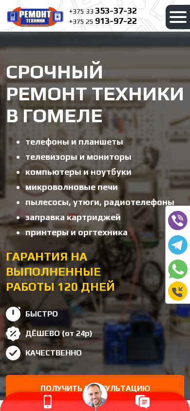 | SEO-описание | Ремонт техники в Гомеле услуги по ремонту мобильных устройств, компьютеров, телевизоров, пылесосов, микроволновых печей и многое другое. Сельмаш, Ефремова звоните +375 33 353-37-32 работаем до 20.00 |