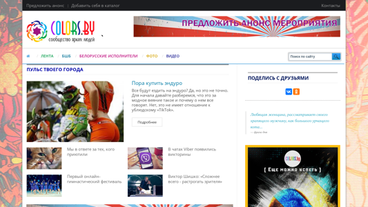 | Название / Заголовок | COLORS.BY: рекламно-информационный портал - афиша Минска, новости, трейлер, анонсы, фотоотчеты |