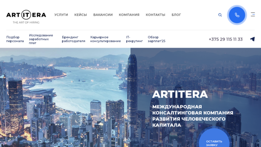 | SEO-описание | Международная консалтинговая компания ARTITERA ✅ Лидер в HR-консалтинге ✅ исследованиях рынка труда и заработных плат ✅ найме топ-менеджеров. Свяжитесь с нами ☎ +375 29 115 11 33. |