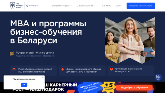 | AI-анализ | The website "МВА образование Беларусь" (MBA Education Belarus) offers MBA programs and courses for directors from City Business school in Belarus, providing an international diploma from a prestigious business school. Keywords associated with the website include 'mba', 'директор' (director), 'обучения' (education), 'обучение' (training), and various program titles such as 'MBA General' and 'MBA Intensive'. The website also mentions 'курсы' (courses) and 'специализации' (specializations) for different roles like 'директор по финансам' (Director of Finance), 'директор по персоналу' (Director of Human Resources), and 'директор по продажам' (Director of Sales). The website provides information on |
