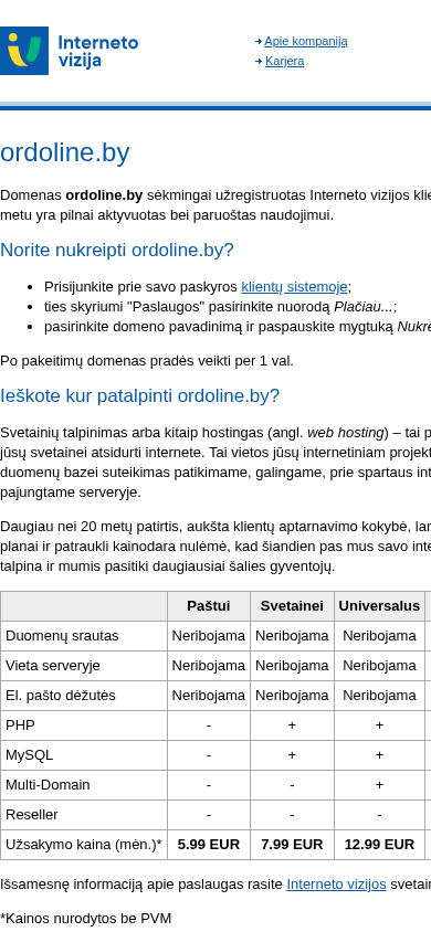 | Название / Заголовок | ordoline.by - Užregistruotas domenas - Interneto vizija |