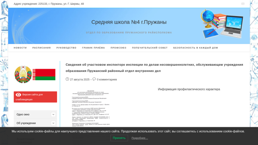 | Название / Заголовок | Средняя школа №4 г.Пружаны – Отдел по образованию Пружанского райисполкома |