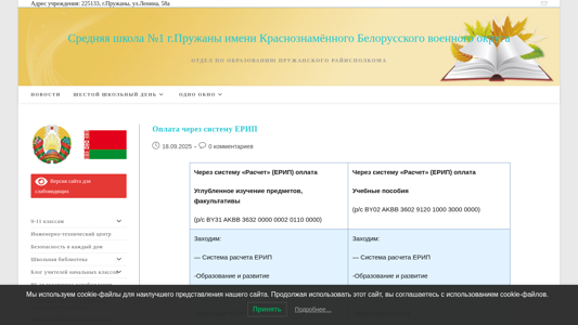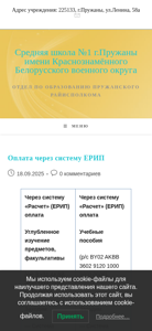| AI-анализ | The web project "Middle School No.1 in Pruzhanys Named after the Red Banner Belarusian Military District — Education Department of Pruzhan District Executive Committee" is an educational institution's website. The main page contains information on news, events, planning, and contact details. Users can access a schedule for personal meetings, information on administrative procedures, and an electronic application system. The website also offers a section for paying for various educational services through the YRIP system, including textbooks and supplementary materials, school fees, and donations. The domain is registered as "school1.pruzhany.by". |