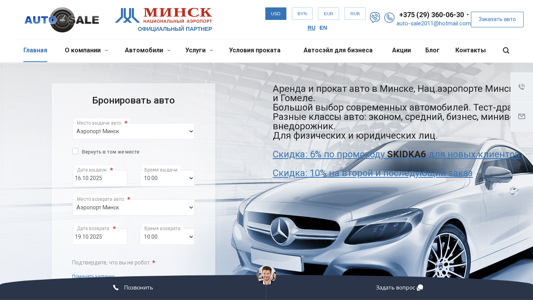 | AI-анализ | The portal auto-sale.by offers car rental and car rental services in Minsk. The website provides a wide selection of cars for rent at affordable prices. Customers can book online and save money. The offer includes various car classes and types, such as economy, medium, business, minivan, and SUV. Additionally, the portal offers various services like car rental without a driver, car rental for legal entities, car rental for a day or longer periods, car rental for weddings, car rental around the clock, car rental at the airport, and car rental with border crossing. The portal also offers car sales for businesses, discounts, and a blog. The contact details and company information are provided. |