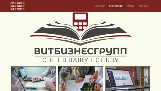 | AI-анализ | --- This website is the homepage of Vitbuh.by, a Belarusian business providing bookkeeping and accounting services. Keywords associated with this site include 'main page', 'Vitbiznesgrup', 'accounting', 'billing', 'reviews', and 'prices'. The site offers three types of accounting services: accounting on the Unified State Register (USN), accounting with the general system of taxation (OSN), and a personalized accounting service. The USN service includes keeping account books, calculating salaries, filing declarations, and providing reports to various authorities. The cost for this service starts at 400 Belarusian rubles per month. The OSN service offers bookkeeping and tax reporting for organizations, with pricing varying based on document volume. The personalized accounting service provides reporting based on client data to the State Fiscal Service of Belarus |