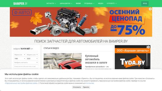 | AI-анализ | --- The website Bamper.by is an online marketplace for used and new auto parts, offering services like dismantling and delivery throughout Belarus and Russia. Users can search for parts using various filters, including make, model, and type. The website features a wide range of categories, including engines, transmissions, brakes, and body parts, among others. Keywords associated with the site include 'parts', 'used', 'new', 'prices', and 'delivery'. The site also offers sections for motorcycle parts and tires. |