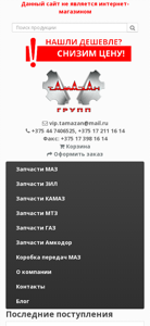 | AI-анализ | This website is an online catalog for purchasing original spare parts for Maz heavy trucks in Minsk, Belarus. It offers reliable suppliers, sales for both wholesale and retail, and delivery across Belarus. The site lists various spare parts for Maz trucks including engines, fuel systems, exhaust systems, cooling systems, transmissions, drive shafts, front and rear axles, suspension, and cab accessories. Other brands like Zil, Kamaz, MTZ, GAZ, and Amkodor are also featured with their respective spare parts. The company, OOO "Tamazaan Group," is listed as the seller. |
