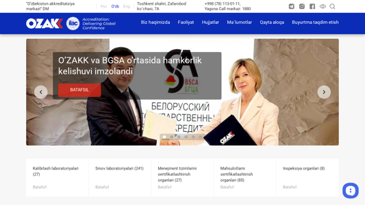 | AI-анализ | The portal "O‘zbekiston akkreditatsiya markazi" DM - Akkred.uz is a central accreditation body for O'zbekistan, providing accreditation services for various certification bodies, laboratories, inspection agencies, and management systems. The website offers information on their activities, including partnerships with international organizations such as APAC Assembly and IAF/ILAC, and the number of certifications issued in 2025. The website also features news and seminars on topics like sanitary-epidemiological certification and professional agnosticism, as well as a service for searching accredited organizations in their database. The domain is registered under the .uz top-level domain for Uzbekistan. |
