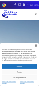 | AI-анализ | This website, titled "Accueil - DAKHLA ATTITUDE" and with the domain name "dakhla-attitude.ma," is a hotel booking and kitesurfing center website based in Dakhla, Morocco. The website highlights its status as the best hotel for trips to Dakhla and boasts of being the biggest kitesurfing center with over 10 years of experience. Keywords related to the website include "dakhla," "attitude," "pour," "une," "nos," "des," and "dragon camp" among others, with "dakhla" being the most frequently used term. The website also has a functional cookie consent banner that allows users to manage their consent for various website functionalities and preferences. |