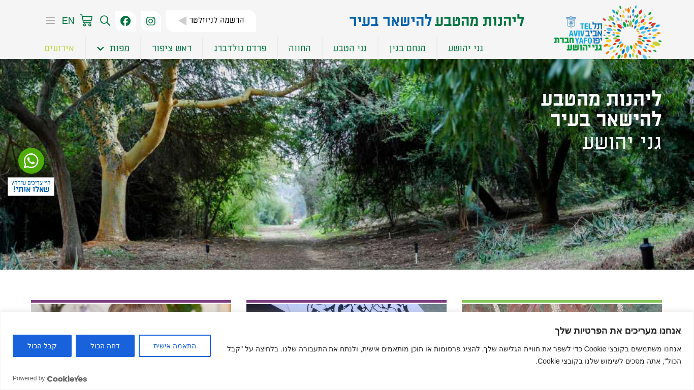 | SEO-описание | חברת גני יהושע מנהלת את מתחמי הטבע הגדולים בישראל בעיר ת"א-יפו: גני יהושע, פארק מנחם בגין, גני הטבע והחווה החקלאית. |