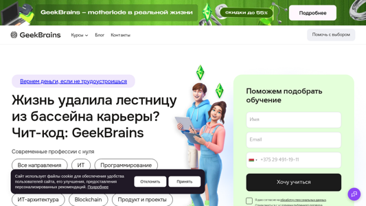 | AI-анализ | --- The portal GeekBrains.by is an online educational platform in Belarus offering a range of courses in various fields such as programming, analytics, design, gaming, marketing, management, children, cinema and music, and other topics. The platform is designed for online learning in Minsk and provides opportunities for acquiring new professions remotely in Belarus. GeekBrains offers contemporary IT careers including programming, analytics, machine learning, testing, IT architecture, blockchain, product and projects, marketing, gaming, design, and more. The website caters to users in Belarus, Russia, Armenia, Moldova, Uzbekistan, Kazakhstan, Kyrgyzstan, Tajikistan, Afghanistan, Albania, Algeria, American Samoa, Andorra, Angola, Anguilla, Antigua and Barbuda, Argentina, Aruba, Ascension |