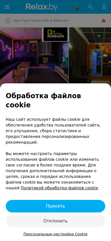 | AI-анализ | The website Komnata All Inclusive (Ол Инклюзив) is an art-space in the Soviet District of Minsk, Belarus, offering private rooms for cozy gatherings, celebrations, and enjoyable leisure time. Guests can bring their own food and drinks, play music, and even sing or play in the karaoke room. The space combines a homely atmosphere with a stylish interior, featuring decorative accents worth photographing. A mini-kitchen, relaxation area, and entertainment zone are also available, along with three rooms, each with its unique ambiance. The Yellow Room is spacious and bright, perfect for friendly gatherings, with soft sofas, chairs, a large screen, neon details, and a warm atmosphere. Amenities include PlayStation, VR, karaoke, table games, and RockBand for dancing, games, and an enjoyable |