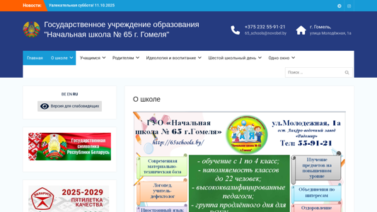 | Название / Заголовок | О школе - Государственное учреждение образования "Начальная школа № 65 г. Гомеля" |