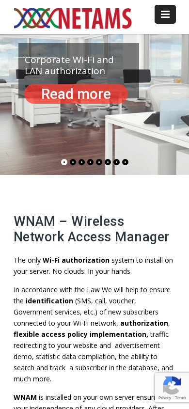 | AI-анализ | The web project "Netams.com" offers a Wi-Fi authorization system, named Wireless Network Access Manager (WNAM), for self-hosting on one's server. Users have complete control over their data. The website provides detailed information about the product's purpose, features, and compatibility, as well as a comparison with other solutions. The target audience includes businesses, hotels, service providers, advertisers, and government agencies. The site is available in both Russian and English languages and offers support, documentation, and a demo for potential buyers. WNAM is an on-premise 802.1x alternative to ISE, NPS, and Freeradius for corporate Wi-Fi and LAN authorization. |