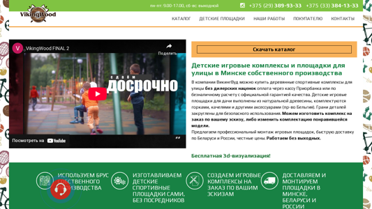 | AI-анализ | This website is an e-commerce platform offering wooden children's playground equipment and structures for sale in Minsk, Belarus, and Russia. The company, VikingWood, manufactures and sells various types of playgrounds, including private, community, and sports playgrounds, as well as swings, slides, seesaws, and other accessories. Custom orders are also accepted. The website features a large catalog of products, contact information, and details on payment and delivery options. The company guarantees quality and offers professional installation services. Playgrounds are made from natural wood and produced in-house without intermediaries. The website also provides 3D visualization services and operates seven days a week. |