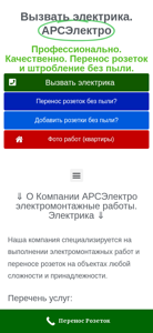 | SEO-лексика | электрика монтаж розеток работ кабеля без пыли перенос вызвать работы при прокладка скрыто спасибо все проводки других правила арсэлектро розетки |