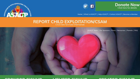 | AI-анализ | This website, ASACP | Association of Sites Advocating Child Protection, is the official site of the Association of Sites Advocating Child Protection, an organization dedicated to protecting children from exploitation on the internet. The site provides information on the organization's mission, initiatives, and resources. Keywords related to the site include 'ASACP', 'child protection', 'exploitation', 'report website', and 'donate'. The site also features a tip line for reporting child exploitation online. Users can donate to the ASACP Foundation to support the organization's efforts. The site is powered by Google Analytics and uses JavaScript to load ads from Google Syndication. |