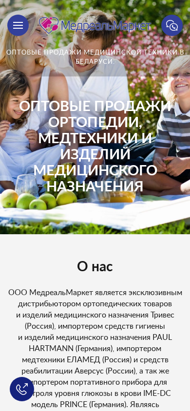 | AI-анализ | The web project MedreальМаркет is an optoelectronic retailer based in Belarus. They specialize in the wholesale sale of medical equipment, orthopedic items, products for care and hygiene, and rehabilitation tools. Key product categories include tonometers, inhalers, massagers, Darsonval therapy devices, bandages, corsets, crutches, canes, walkers, and various types of pads and belts. The company is an exclusive distributor of the Russian brand Тривес for orthopedic goods and medical equipment, an importer of German Paul Hartmann's hygiene and medical supplies, Russian Elamed's medical technology, and Russian Aversus' rehabilitation devices. As a client-oriented business, MedreальМаркет aims to build long-term partnerships based on mutually beneficial cooperation |