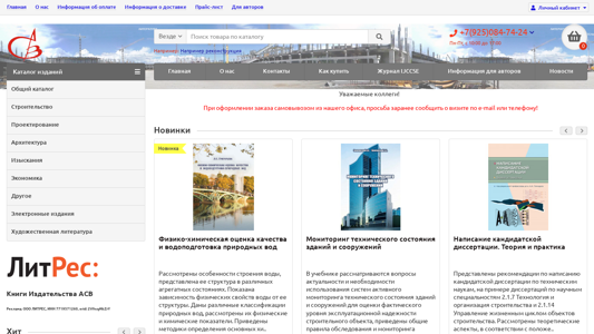 | AI-анализ | This website is the online store for the publishing house ASV, specializing in the sale of literature related to construction and architecture. The company also publishes literature in the fields of construction and design. The website offers a personal cabinet for registration and authorization, a main page with information about the company, a pricing list, and a contact number for phone inquiries. The catalog includes sections for building, project design, architecture, investigations, economics, and electronic publications, as well as artistic literature. The top-selling items are a guide for designing and calculating building structures (9th edition), a reference manual for the chief engineer or architect of a project (8th edition), and a textbook on the basics of calculating reinforced concrete (4th edition). The website also features a Telegram channel and a catalog of publications. The website's top words include "cart," "constructing," "publication," |