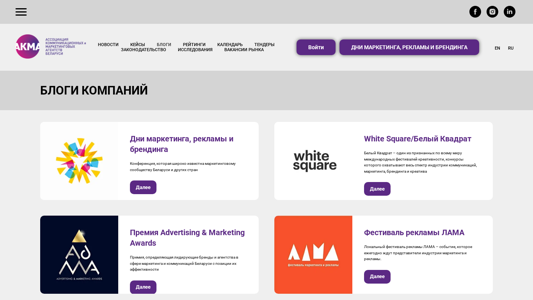 | AI-анализ | The website <blogs.association.by> is the blog section of the Association of Communication and Marketing Agencies in Belarus. It features news, cases, blogs, ratings, calendars, tenders, and legislations related to marketing, advertising, and branding in Belarus. The site also provides information about various events, such as the White Square/Beliy Kvadrat international creativity festival, the Advertising & Marketing Awards, and the Local Advertising Festival Lama. Several leading marketing and advertising agencies in Belarus, including Aida Pioneer, Artox Media Digital Group, Salmon Graphics, and MEDIACREW PRODUCTION, are listed on the site. Additionally, there is a section for registering and logging in to access more content. AVC, Wunder Digital Agency, and other companies offering branding, logo design, and digital marketing |