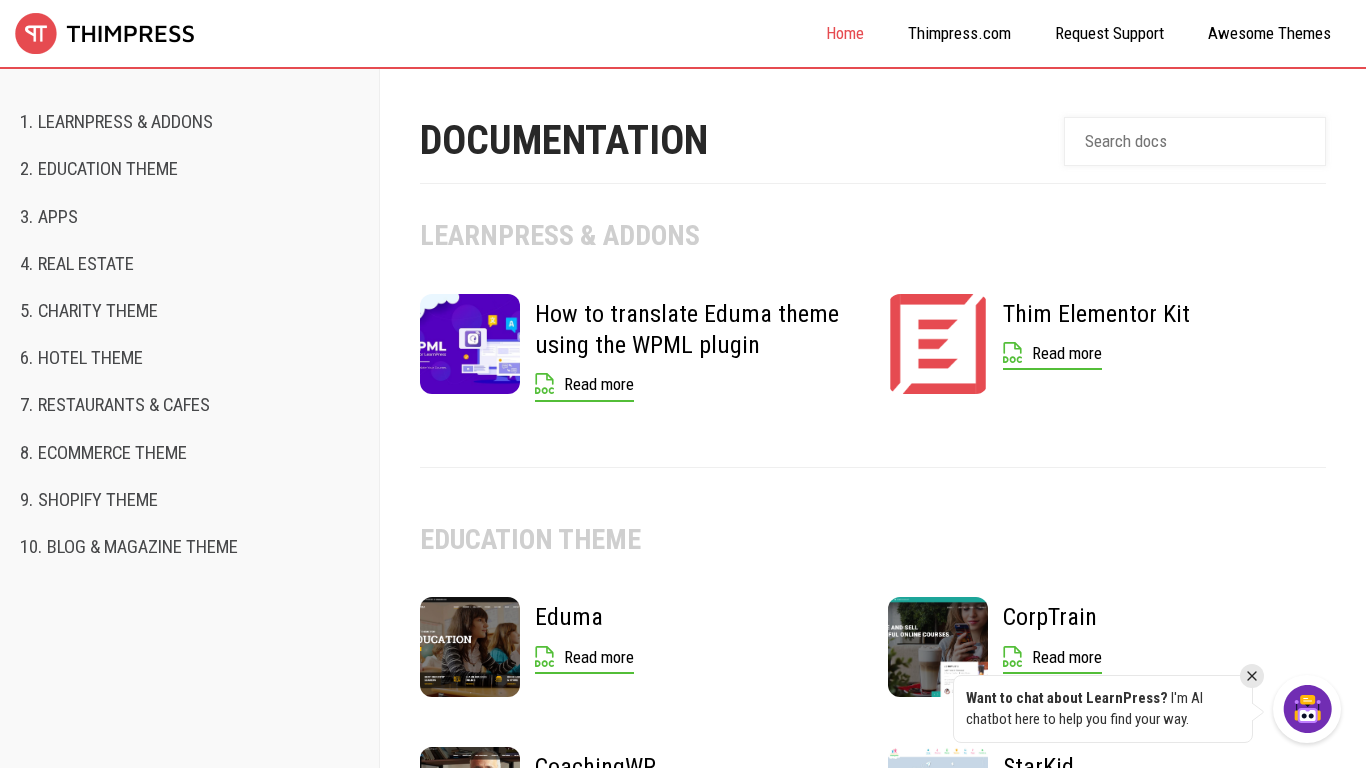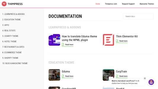 | AI-анализ | language: en The portal Docspress.thimpress.com is the official documentation site for ThimPress themes and apps. The site offers comprehensive documentation for various ThimPress themes and apps including Education, Real Estate, Charity, Hotel, and Restaurants & Cafes, among others. Users can find instructions on how to use and customize these themes and apps, as well as troubleshoot common issues. The site also includes information on translating certain themes using WPML plugin, and links to additional resources such as support requests, theme demos, and related apps. The site is primarily focused on English language users. |
