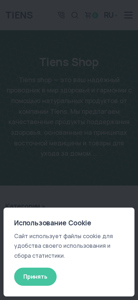 | AI-анализ | The portal Tiens Shop offers a reliable guide to the world of health and harmony through natural products from company Tiens. We provide quality products for maintaining health, based on the principles of traditional Chinese medicine, as well as household items.... Categories include 'Bady' (bath and body), cosmetics and personal hygiene, smart devices and accessories, cleaning with the EKO label, pricing, and more. Products include 'Tianshi Capsules with Zinc', 'Calcium Tianshi', 'Multivitamin Complex with the Taste of Club Mousse', 'Omega-3 with Flaxseed Oil and Vitamin E', 'Spirulina in Capsules Tianshi', 'Cordyceps Tianshi', 'Anion Relax AiriZ Everyday Feminine Hygiene Products', 'Glucosamine Tiens', 'Mg B |