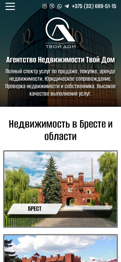 | AI-анализ | The website YourHome.by is a real estate agency named 'Агентство недвижимости - Твой Дом'. It offers a full range of services related to the buying, selling, and renting of various types of real estate, including residential properties, commercial spaces, and land plots. The agency covers the Brest region in Belarus and provides legal support, property verification, and swift transaction completion. The website features categories for properties in different locations, including Brest, Cobrin, Pruzhany, Kamenets, and Zhabinka. The company also provides expertise in property valuation and offers a catalog of properties for sale. The agency claims to have a team of experienced professionals and a reliable network of payment systems to ensure safe and efficient transactions. Positive customer reviews are highlighted on the website. |