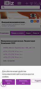 | AI-анализ | The website is for Vneshneekonomicheskaya Lisintgovaia Compania OOO, a leasing company in Minsk, Belarus. The company offers leasing services for both light and heavy vehicles. The website provides contact information, including three phone numbers, and the company address at Puшкина pr-t, 43A, cab. 315, in the 220082 postal code area of Minsk. The website also includes information about opening hours, which are from 9:00 to 17:45, Monday through Thursday, and from 9:00 to 16:30 on Fridays, with Saturdays and Sundays being closed. The website is in the category of 'Leasing' on IBiz Media's business directory for Belarus. |