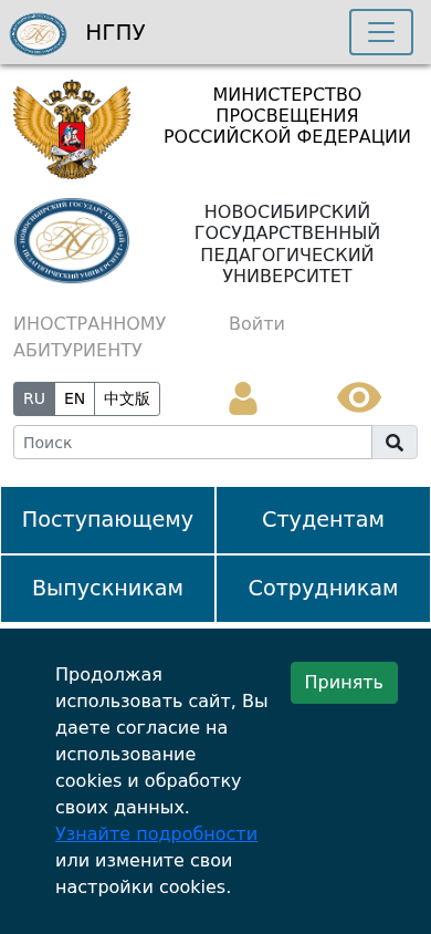 | SEO-описание | ФГБОУ ВО НГПУ является самым крупным педагогическим вузом Сибири и Дальнего Востока и занимает лидирующие позиции в регионе по ведущим направлениям педагогической науки, готовит специалистов для различных сегментов экономики (образование, наука, СМИ, бизнес, спорт, управление). |