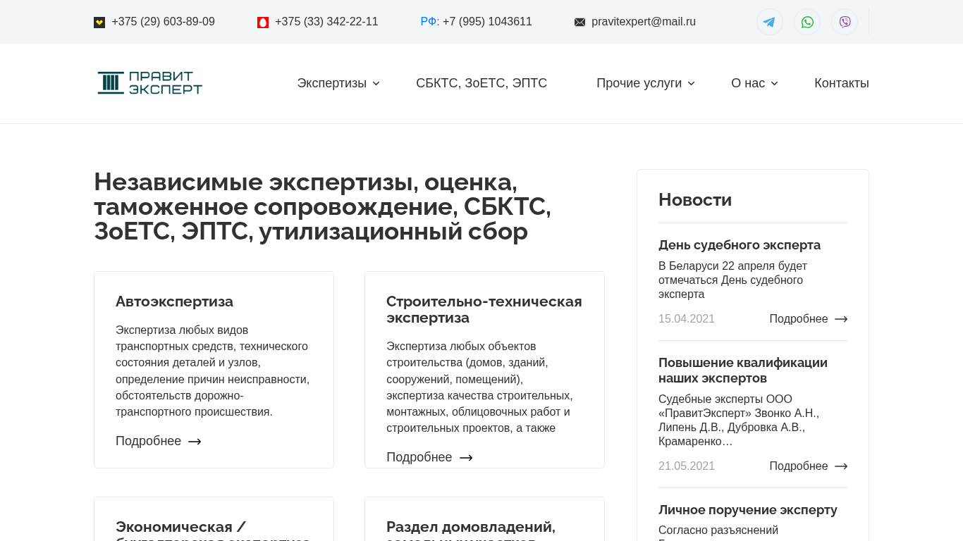 | Название / Заголовок | Независимая судебная, досудебная экспертиза, оценка, СБКТС, ЗоЕТС, ЭПТС, утилизационный сбор, сопровождение таможенного оформления - ООО "ПравитЭксперт" |