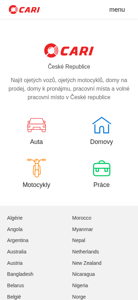 | AI-анализ | The website is a search engine for finding used cars, motorcycles, houses for sale, houses for rent, jobs, and job listings in the Czech Republic. The title and description of the website contain relevant keywords such as 'ojet' (used), 'pracovní místa' (jobs), and 'České republice' (Czech Republic). The top words indicate a focus on 'ojet' vehicles, 'domy' (houses), and 'pracovní místa' (jobs). The menu includes sections for cars, motorcycles, houses, and jobs in the Czech Republic as well as various countries. The domain name is 'cari.cz'. |