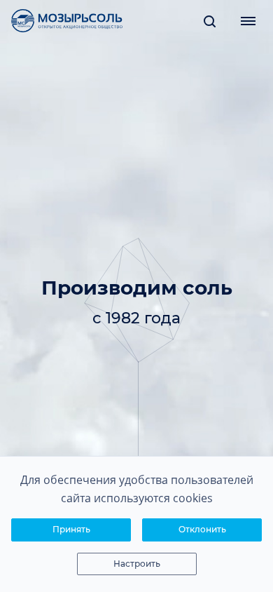 | SEO-описание | Выбрать на сайте производителя и купить соль ОАО «Мозырьсоль» в Минске, Витебске, Могилеве, Гомеле, Гродно, Бресте можно по выгодным ценам с доставкой по всей Беларуси. Узнать стоимость оптом и в розницу и связаться с отделом продаж по Беларуси +375 33 399-22-69 (Viber) 35+ лет на рынке | в 18 странах мира | 480 000 тонн соли в год |