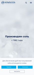 | AI-анализ | The web project is a salt sales platform for OAO "Mozirsol" in Belarus. Customers can select a producer and buy salt in major cities including Minsk, Vitsebsk, Mohilev, Gomel, Hrodna, and Brest at competitive prices with delivery across Belarus. The company has been operating for 38 years and produces 480,000 tons of salt annually. Salt products include food and technical salt for domestic use, as well as B2B offerings such as a nitrite-salt mixture and a production capacity of 99.7% pure sodium chloride. Contact information includes phone numbers and Viber for various departments, as well as email addresses for export and general inquiries. Office hours are Monday through Friday from 8am to 5pm with an online inquiry form available for out-of |