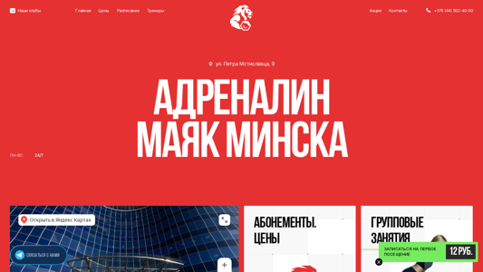 | AI-анализ | The website is for a fitness club named Adrenaline, located in Dana Centr on Petra Mstislavtsa Street 9 in Minsk, Belarus. The fitness club offers affordable prices for training sessions in its modern gym with experienced instructors and new equipment. The website provides information on club hours, which are open 24/7, and contact information, including a phone number for booking appointments and inquiries. The site also features a section on trainers and their qualifications, as well as information on group classes and pricing. The website regularly offers promotional deals and discounts, which can be found on the site. The trainers at Adrenalin are highly qualified, with many holding international certifications and extensive experience. The site includes sections for trainers' biographies, as well as information on various courses and social media profiles. |